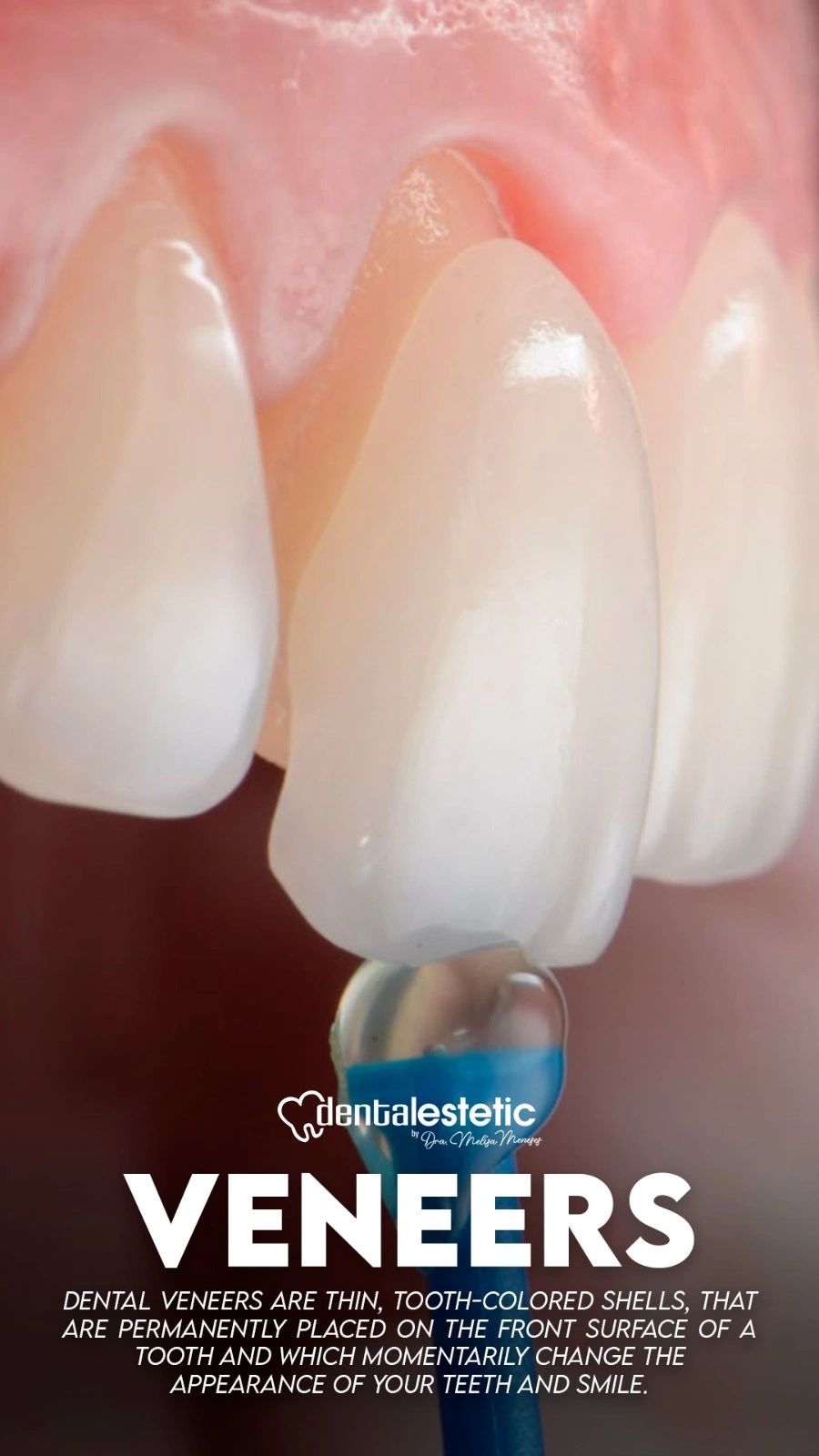 Veneers are thin shells that are bonded to the front of the tooth to improve its appearance. The tooth must be sanded to correct or align them.
